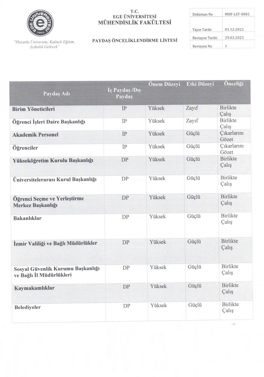 Paydaş Listesi